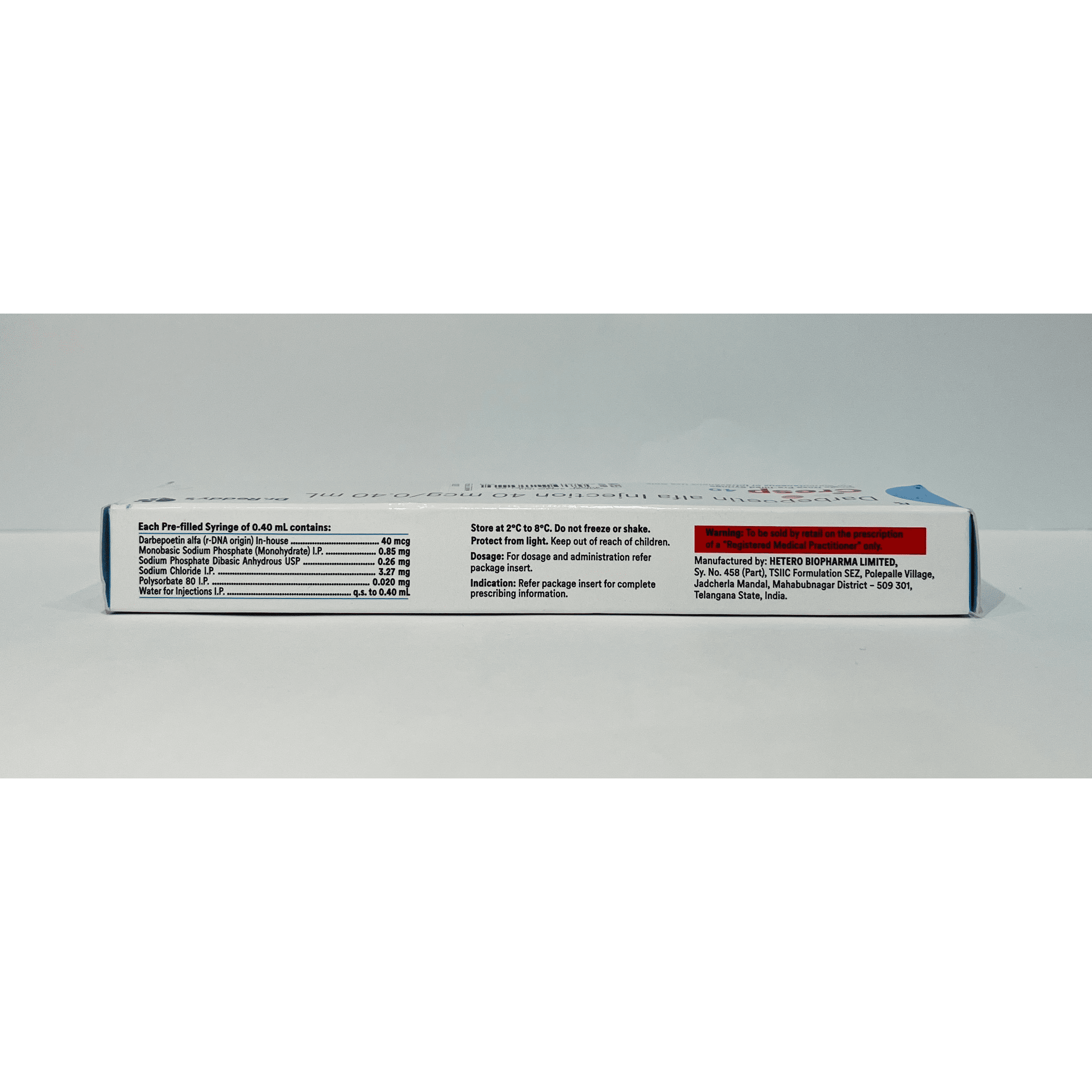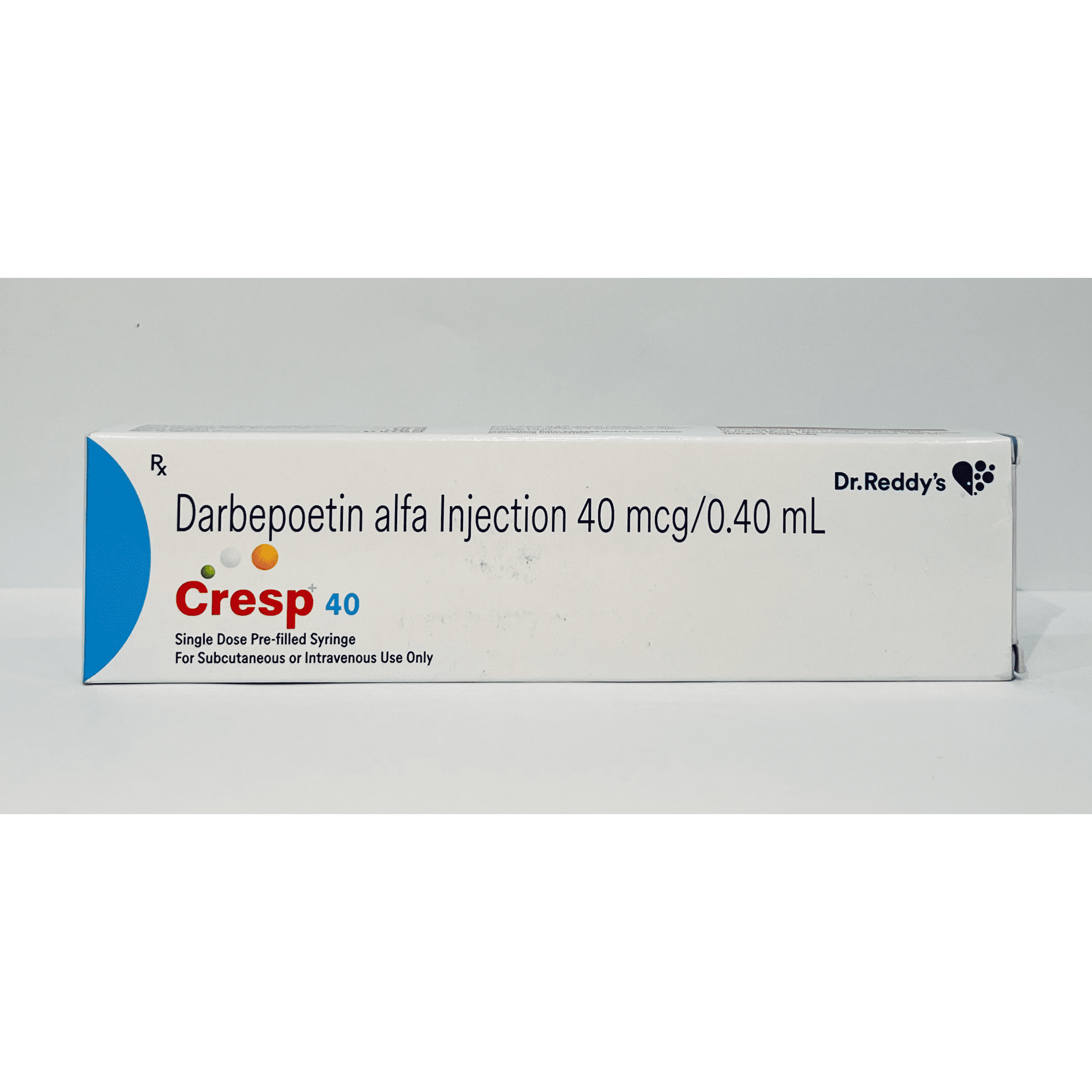 Cresp 40 contains Darbepoetin Alfa, a synthetic form of erythropoietin, a protein that stimulates red blood cell production. It is primarily used to treat anemia associated with chronic kidney disease (CKD) and chemotherapy-induced anemia in cancer patients.