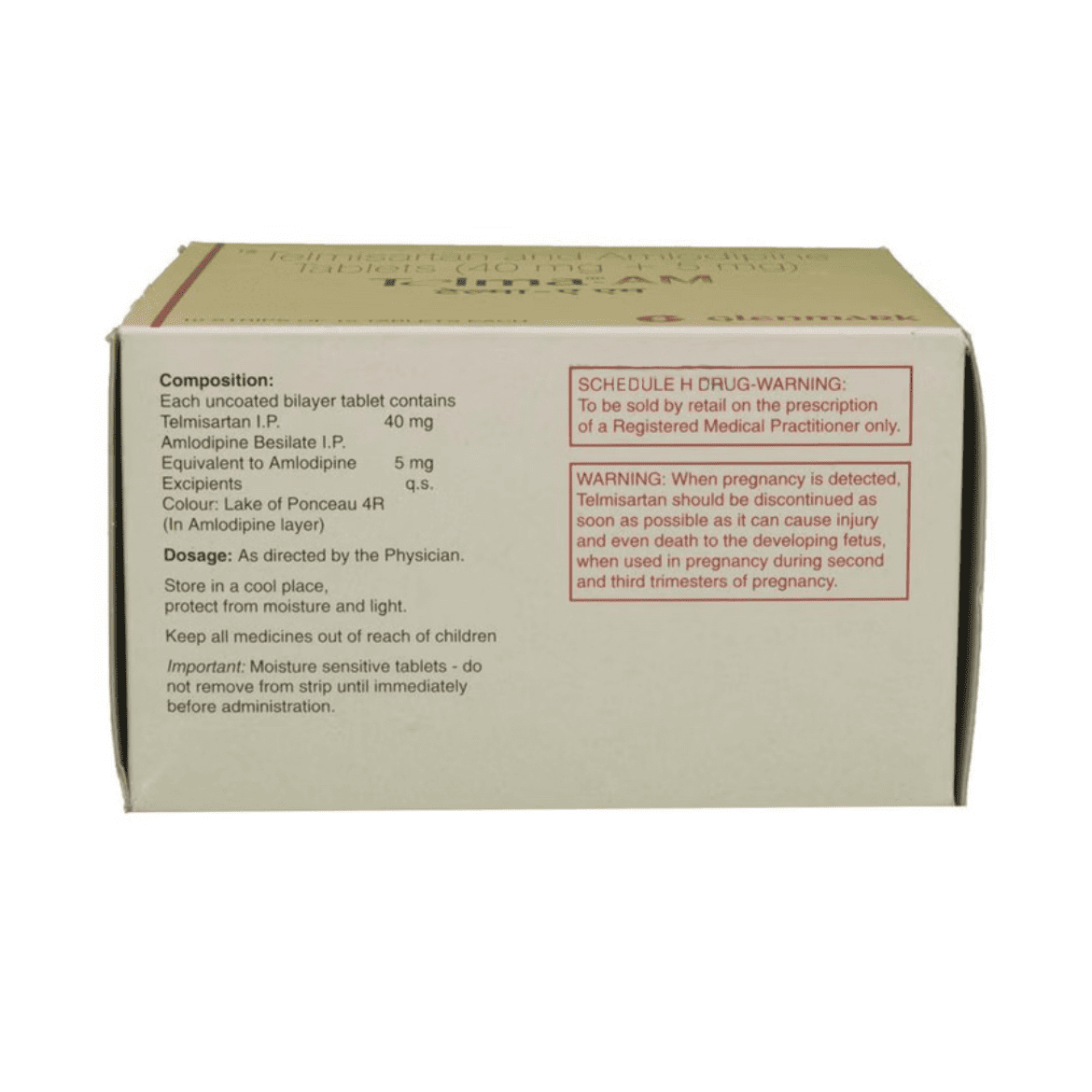 Telma AM is a fixed-dose combination tablet containing Telmisartan (40 mg) and Amlodipine (5 mg).