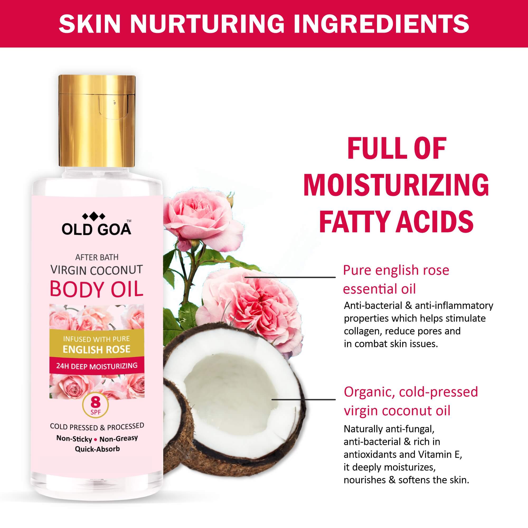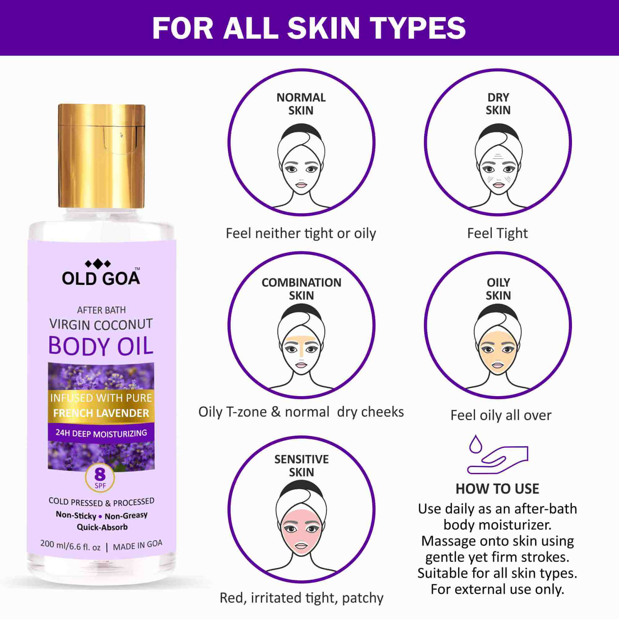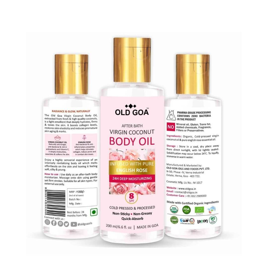100% TROPICAL GOODNESS FOR SKIN CARE: A product of the tropical land of coconuts, Goa India, our pure & premium body oil boosts collagen levels, restores skin elasticity and reduces premature skin aging & marks and can be used as a luscious skin moisturizer & lotion.